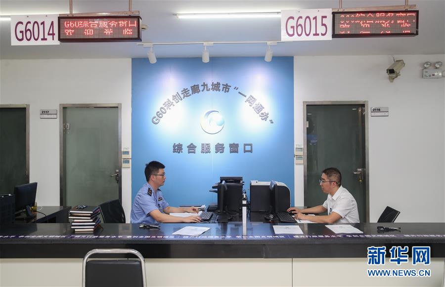 這是上海市松江區(qū)行政服務中心內的G60科創(chuàng)走廊九城市“一網(wǎng)通辦”綜合服務窗口(9月28日攝)。新華社記者 丁汀 攝