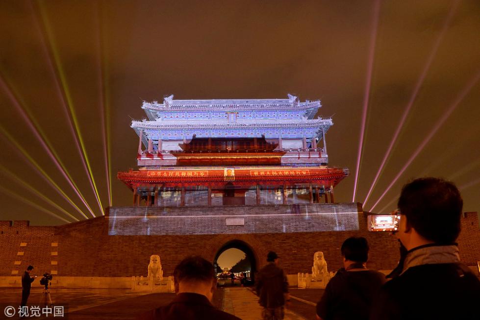 永定門城樓南廣場(chǎng)舉辦的“我愛(ài)你中國(guó)”迎國(guó)慶燈光秀于2018年9月28日晚正式向市民首秀。即日起至10月7日,每晚這里都將啟動(dòng)燈光表演。