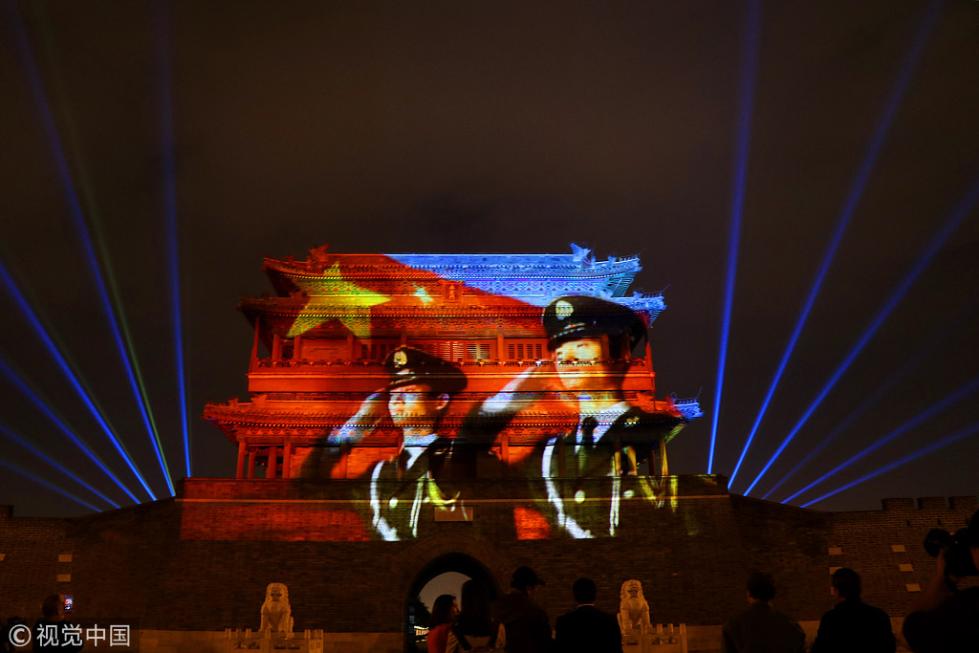 永定門城樓南廣場(chǎng)舉辦的“我愛(ài)你中國(guó)”迎國(guó)慶燈光秀于2018年9月28日晚正式向市民首秀。即日起至10月7日,每晚這里都將啟動(dòng)燈光表演。