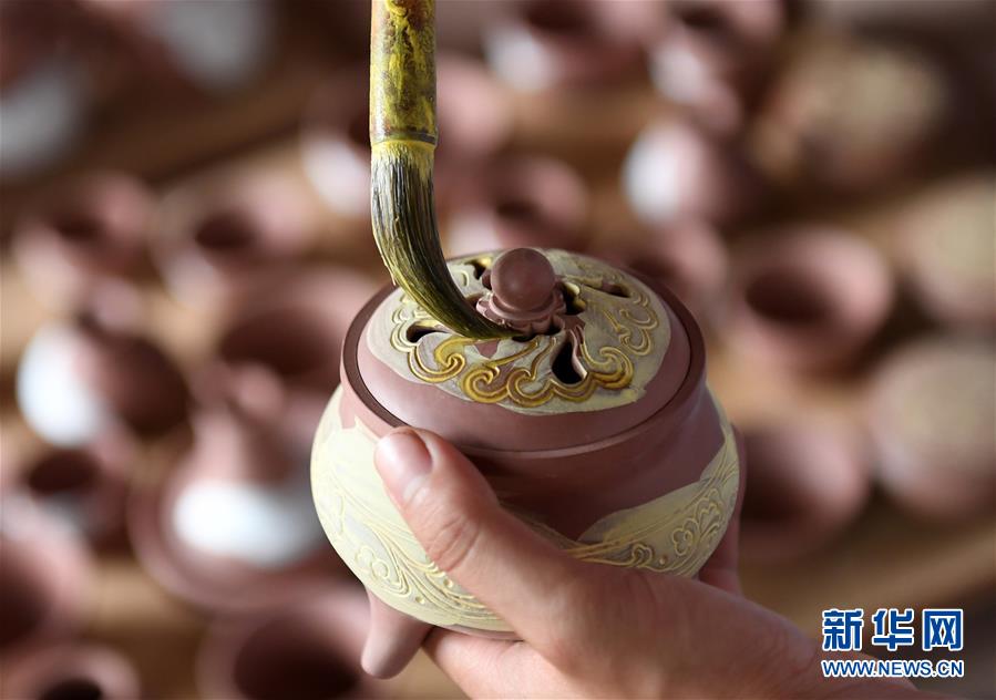 10月9日,欽州市一家廣西坭興陶生產(chǎn)企業(yè)的員工在制作坭興陶產(chǎn)品。