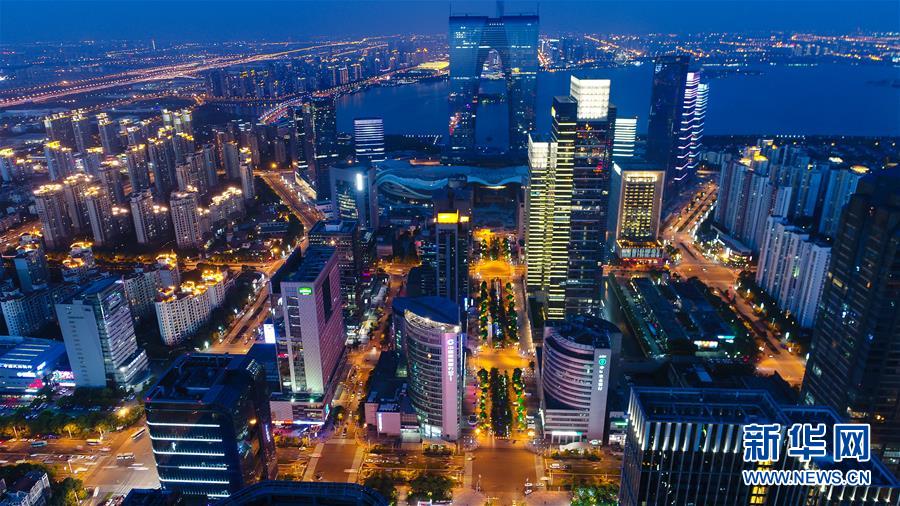 2017年5月15日無人機(jī)拍攝的蘇州工業(yè)園區(qū)金雞湖夜景。 小橋流水,粉墻黛瓦,蘇州,這座經(jīng)歷了2500多年歲月洗禮的國家歷史文化名城,以“人間天堂”名揚(yáng)天下。 作為改革開放排頭兵,歷經(jīng)40載發(fā)展,蘇州已經(jīng)坐上全國人均GDP第三大城市、規(guī)模以上工業(yè)總產(chǎn)值第二大城市、經(jīng)濟(jì)總量第一大地級市的交椅。 如今,站在新的時(shí)空起點(diǎn),處于高質(zhì)量發(fā)展關(guān)鍵躍升期的蘇州,一場更高水平改革開放的深刻蛻變正在穩(wěn)健進(jìn)行,一個(gè)更加富足美麗幸福的“新天堂”呼之欲出。 新華社記者 李響 攝