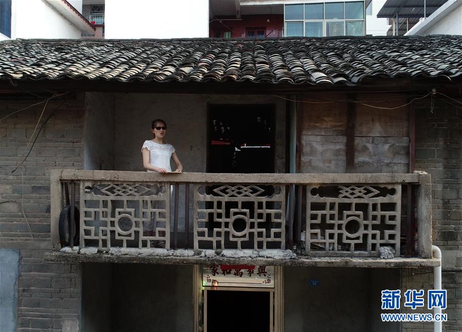 9月26日早晨,楊虹在自家陽臺練習發(fā)聲(無人機拍攝)。