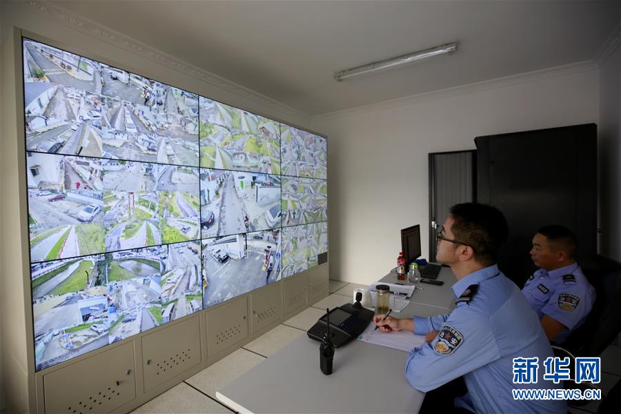 10月9日,工作人員在吳介巷美麗鄉(xiāng)村監(jiān)控室值班。 封閉式管理的村舍干凈整潔,河水清澈,白鷺飛翔。丹桂飄香的金秋時節(jié),記者來到上海閔行區(qū)梅隴鎮(zhèn)永聯(lián)村,眼前煥然一新的美麗鄉(xiāng)村,很難讓人相信兩年前這里是一片臟亂差的“城中村”。 新華社記者 張建松 攝