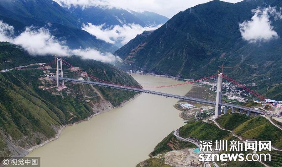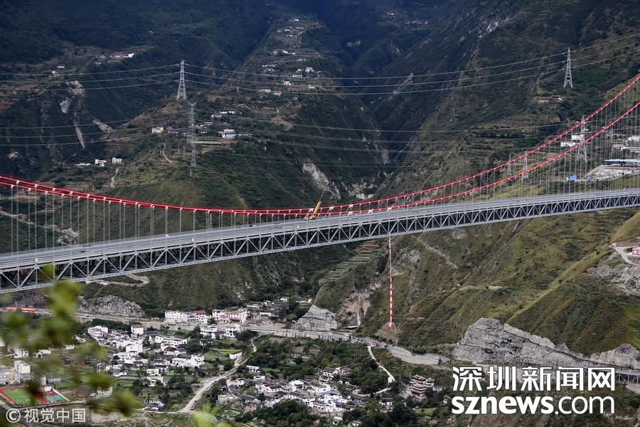 深圳新聞網(wǎng)訊 全長1411米、跨徑1100m、總造價超過10億元,被譽為“川藏第一橋”的雅康高速瀘定大渡河興康特大橋路面施工完成,具備了通行能力。