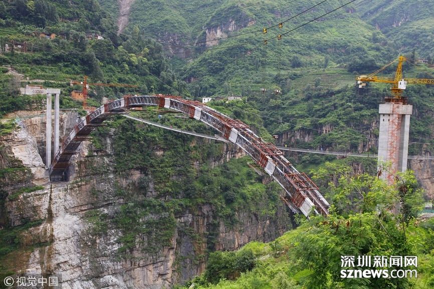 2018年5月30日,云南昭通,鸚哥大橋完成最后一段35米引橋現(xiàn)澆箱梁作業(yè),標(biāo)志著“鸚哥溜索改橋”主體工程完工,進(jìn)入最后階段的橋面鋪裝和防護(hù)欄施工,預(yù)計6月底建成通車。