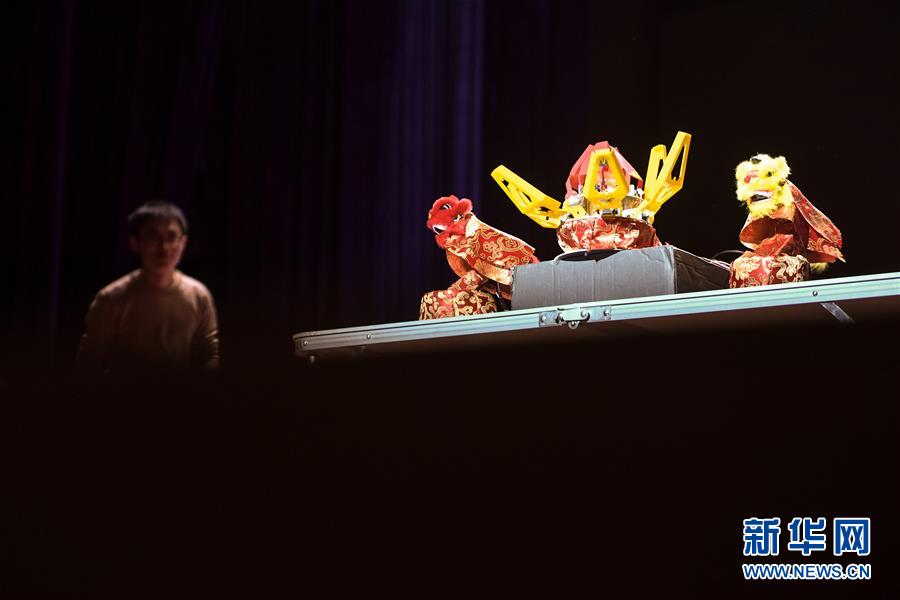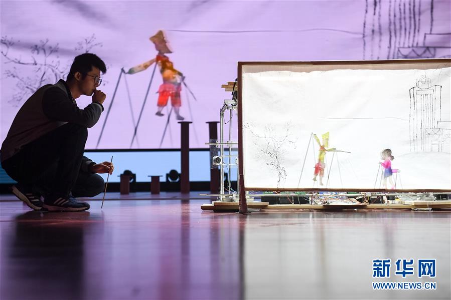 10月21日,在位于安徽合肥的中國(guó)科學(xué)技術(shù)大學(xué),“人五成影”隊(duì)帶著皮影戲機(jī)器人參加比賽。新華社記者張端攝