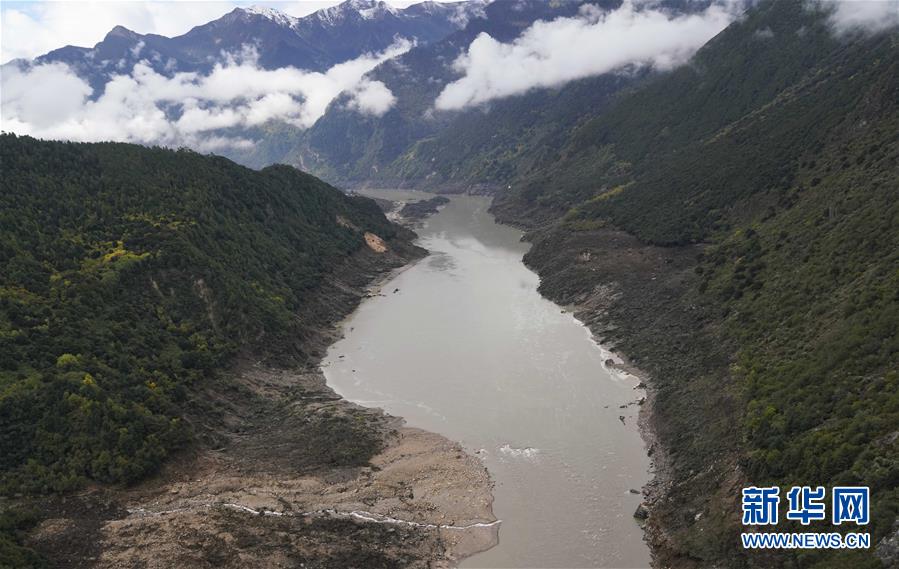 雅魯藏布江上的堰塞湖和堰塞體(10月18日攝)?!⌒氯A社記者 覺果攝