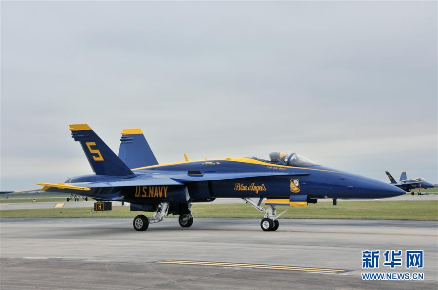 10月20日,在美國休斯敦,一架美國海軍“藍天使”飛行表演隊的飛機準備起飛。