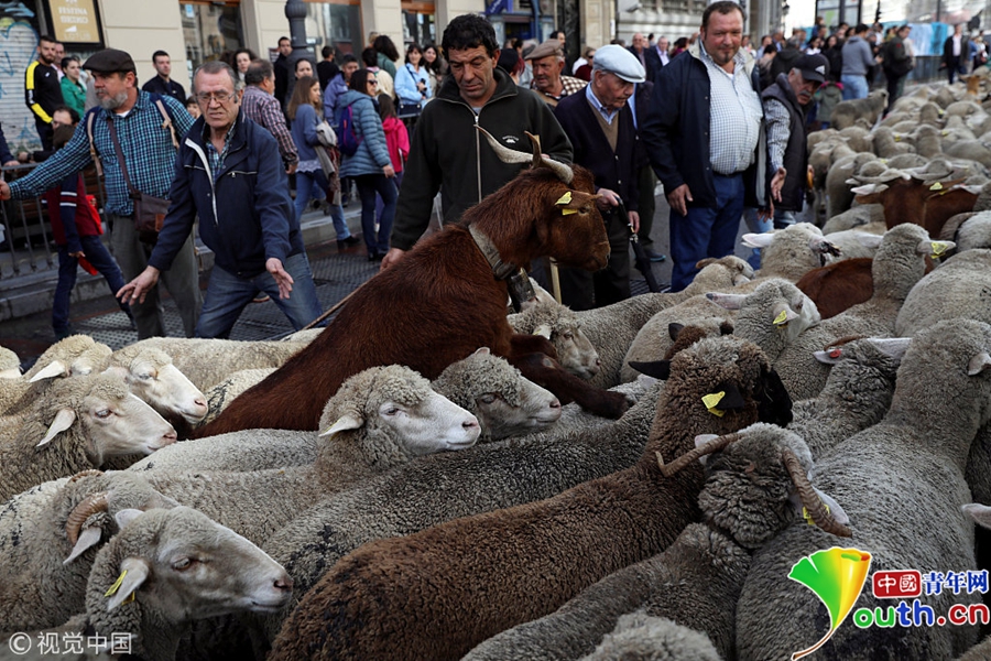 牧羊人驅趕成百上千只綿羊穿越馬德里市街。