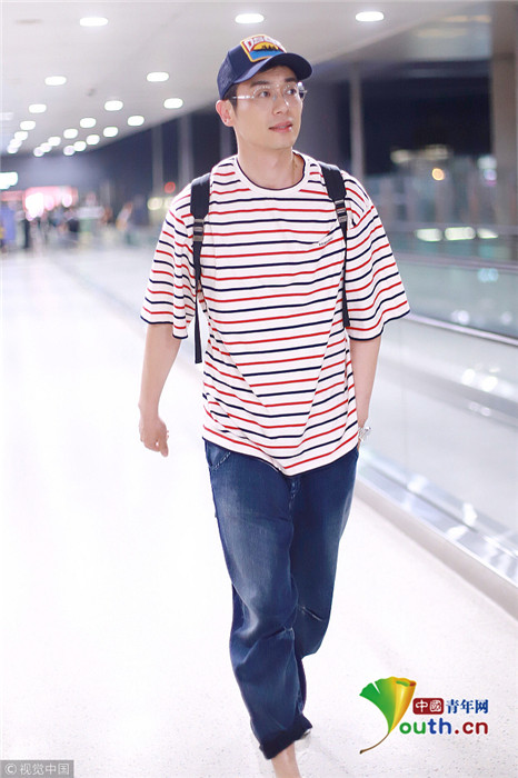 2018年10月22日,上海,朱亞文現(xiàn)身機(jī)場。他頭戴棒球帽,身穿條紋短袖搭配休閑哈倫褲顯得年輕又時(shí)尚,立減十歲大叔變潮男,單手插袋抿嘴略顯痞氣。