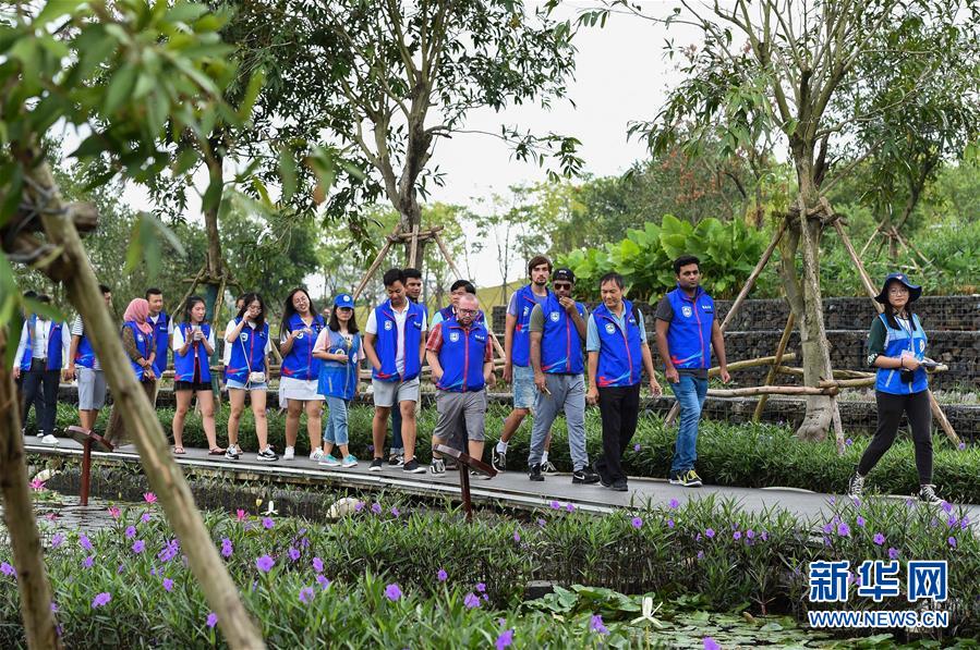 在??谑忻郎岷峪P翔濕地公園,參加濕地保護(hù)志愿服務(wù)講解員培訓(xùn)的留學(xué)生志愿者一邊參觀一邊聽中國志愿者講解(10月21日攝)。 ??谑续P翔濕地公園內(nèi)流水潺潺,綠草如茵。很難想象,這個(gè)市民游客休閑散步的好去處、具有強(qiáng)大污水凈化功能的濕地公園,兩年前還是臭氣熏天、人們避之不及的垃圾堆填場。 把生態(tài)文明建設(shè)放到更加突出的位置,近兩年來海口市以濕地城市建設(shè)為突破口,不斷創(chuàng)新城市生態(tài)治理,著力改善生態(tài)民生,在生態(tài)文明建設(shè)上闖關(guān)探路。 新華社記者 楊冠宇 攝