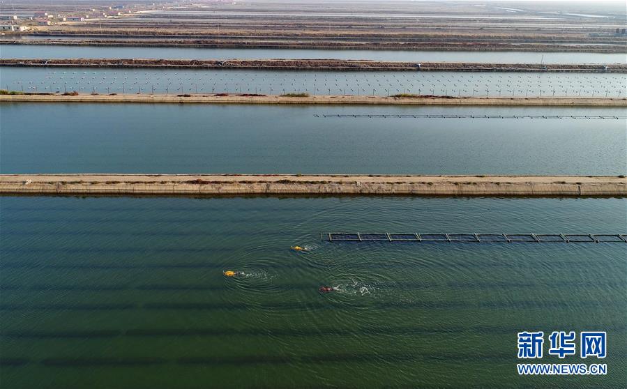 10月22日,樂亭縣姜各莊鎮(zhèn)二節(jié)村海參養(yǎng)殖基地的工人在捕撈海參(無人機(jī)拍攝)。 時(shí)下,正值渤海灣地區(qū)海參收獲時(shí)節(jié),河北省樂亭縣的海參養(yǎng)殖戶忙著捕撈海參,供應(yīng)各地市場。據(jù)介紹,該縣海域水質(zhì)優(yōu)良、氣候適宜,是海參養(yǎng)殖的理想場地,目前發(fā)展池塘造礁養(yǎng)殖海參面積6萬畝,年產(chǎn)鮮活海參6000多噸,年產(chǎn)值2億多元。 新華社記者 楊世堯 攝