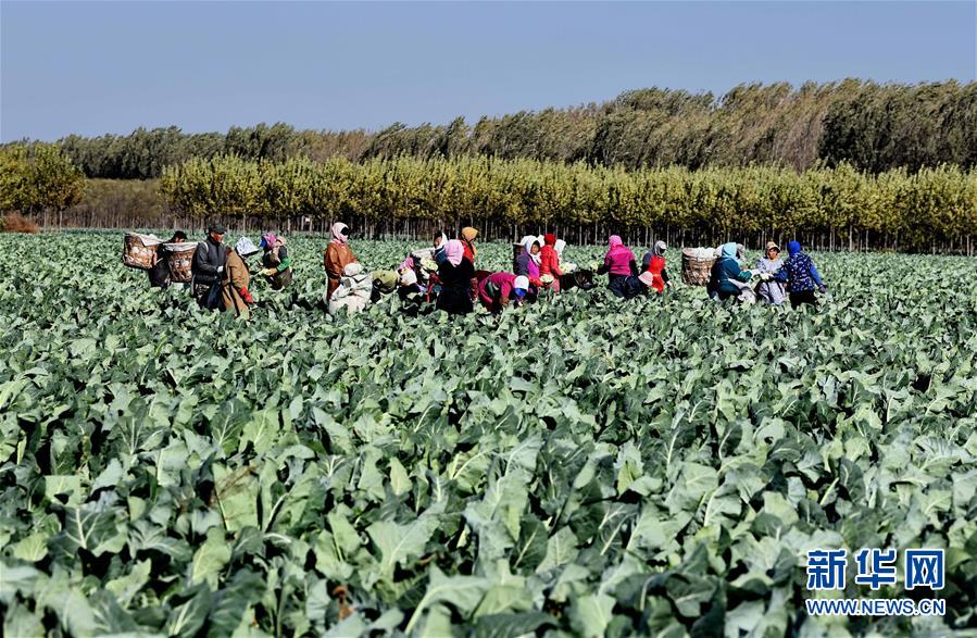 10月29日,樂亭縣馬頭營鎮(zhèn)馬頭營村的農(nóng)民在收獲菜花。 新華社記者楊世堯攝