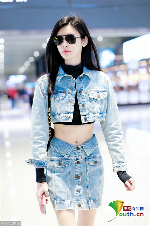 10月31日,上海,奚夢(mèng)瑤現(xiàn)身機(jī)場(chǎng), 她穿帥氣牛仔裝露細(xì)腰長(zhǎng)腿,身材好到爆。