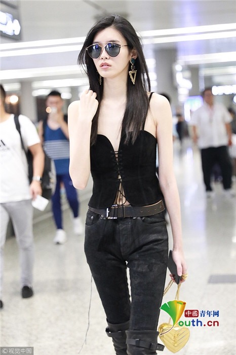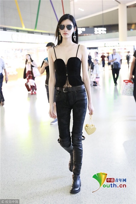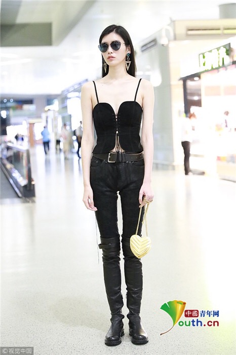 2018年7月25日,上海,奚夢(mèng)瑤現(xiàn)身機(jī)場(chǎng),她穿吊帶馬甲配過(guò)膝長(zhǎng)靴,頻撩發(fā)似女特工。