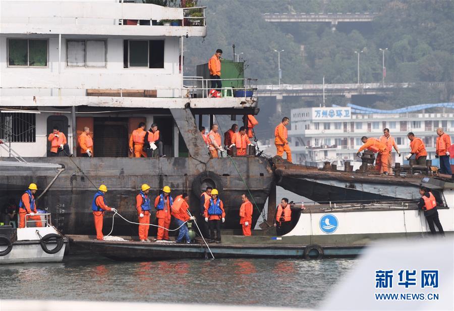 這是10月29日拍攝的重慶萬(wàn)州公交車(chē)墜江事故救援現(xiàn)場(chǎng)。