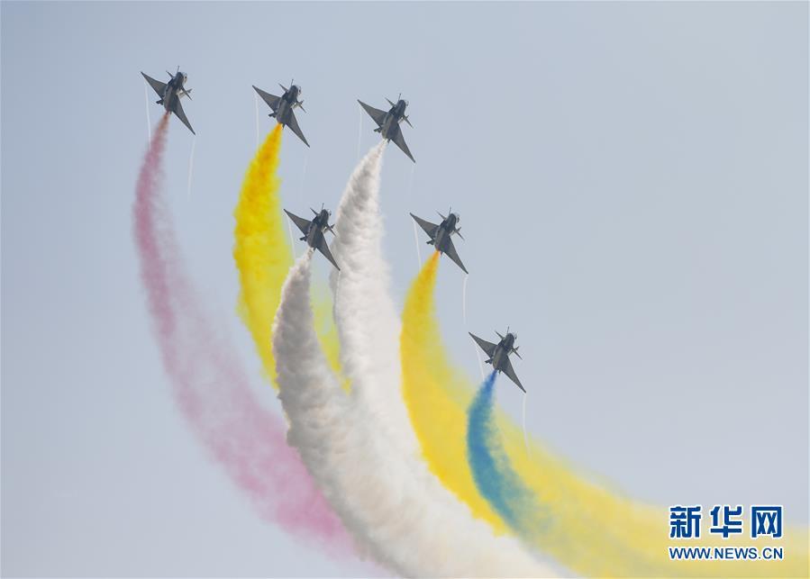 11月6日,中國空軍八一飛行表演隊在航展現(xiàn)場進行飛行表演。當日,第十二屆中國國際航空航天博覽會在珠海開幕。 新華社記者鄧華攝