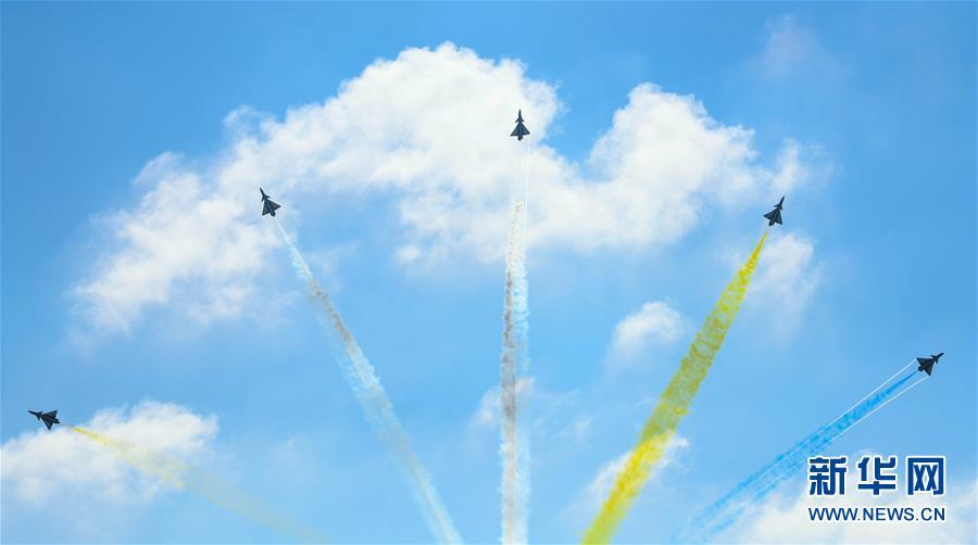 11月6日,中國空軍八一飛行表演隊在航展現(xiàn)場進(jìn)行飛行表演。當(dāng)日,第十二屆中國國際航空航天博覽會在珠海開幕。 新華社記者鄧華攝