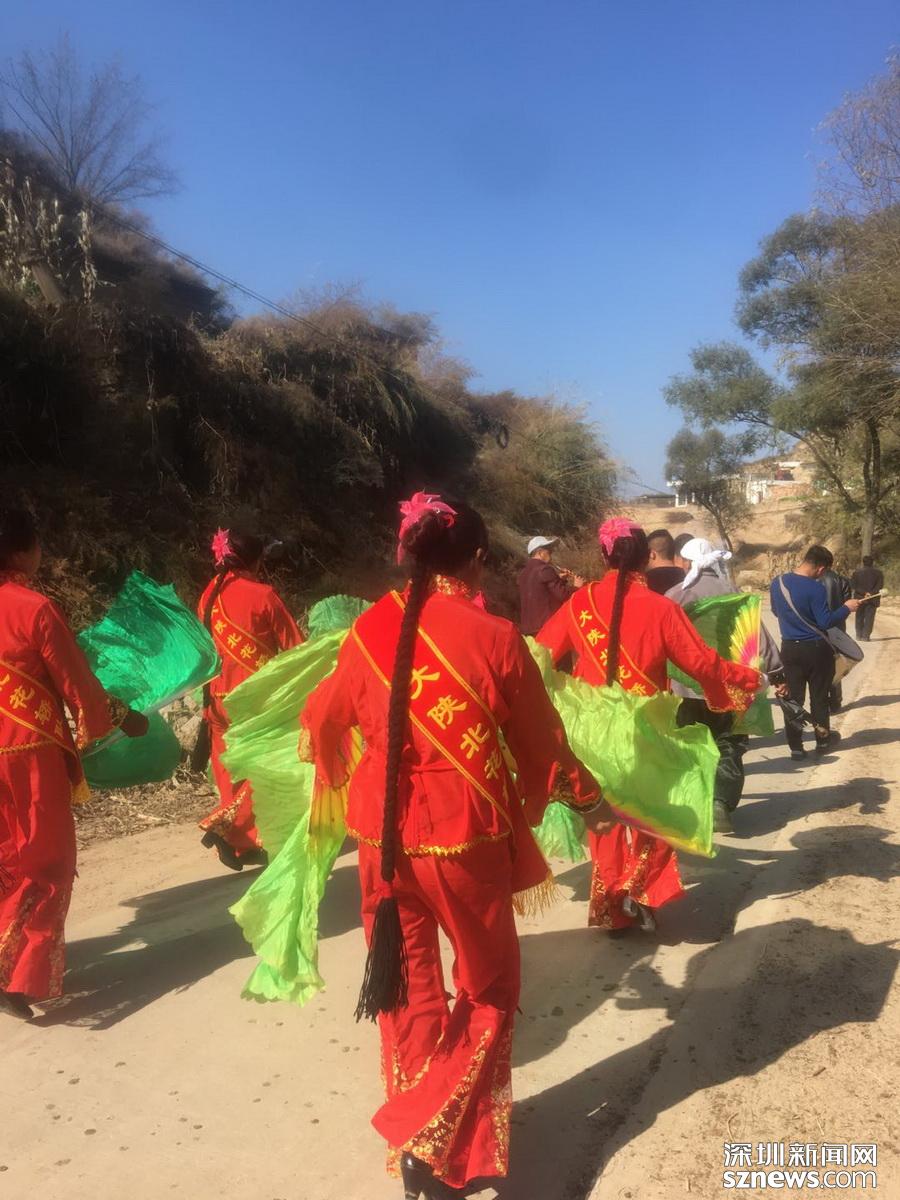 陜北辦喜事(無論紅白喜事),嗩吶隊(duì)一直是必不可少的助興娛樂項(xiàng)目。而秧歌一般是農(nóng)歷正月十五元宵節(jié)在廣場表演節(jié)目。因?yàn)橐郧皧蕵坊顒由伲栽谵r(nóng)村,上至80歲老人下至3歲幼童都會扭秧歌。現(xiàn)在扭秧歌慢慢被加入迎親隊(duì)伍中活躍氣氛。