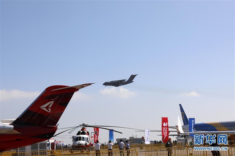這是航展上的轟-6K(左)、運(yùn)-20(中)和運(yùn)-9(11月6日攝)。 新華社記者 鄧華 攝