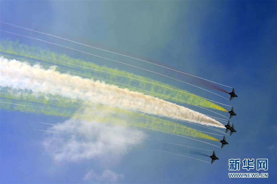 11月6日,中國空軍八一飛行表演隊(duì)在航展現(xiàn)場進(jìn)行飛行表演。當(dāng)日,第十二屆中國國際航空航天博覽會(huì)在珠海開幕。 新華社記者鄧華攝