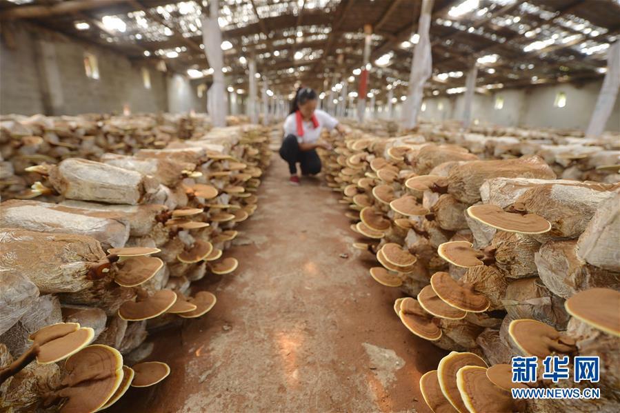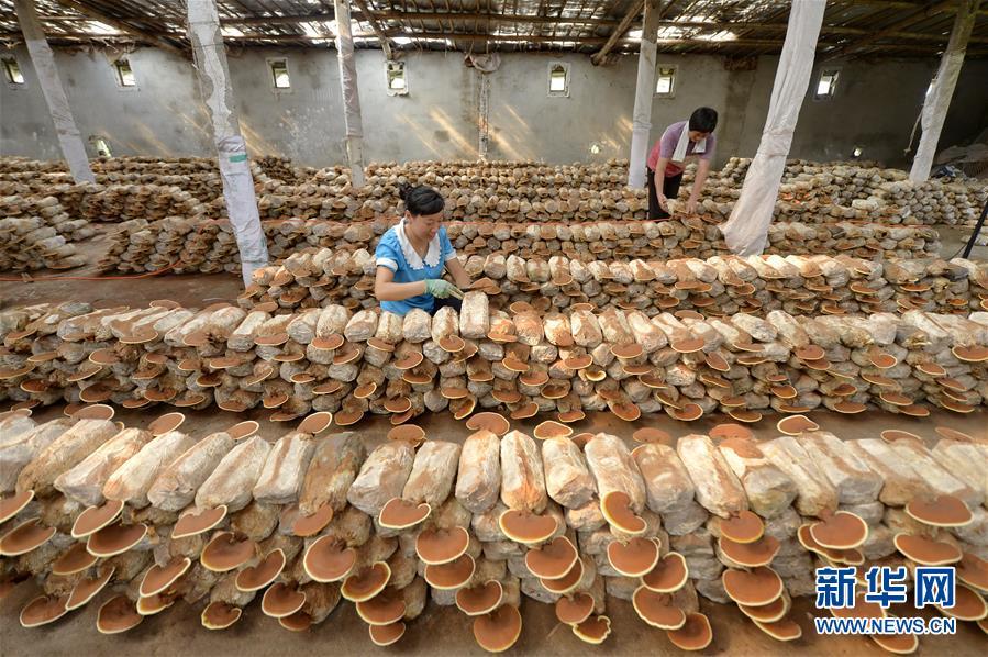 6月20日,廣宗縣大柏社村農(nóng)民在溫室大棚對(duì)靈芝進(jìn)行日常管理。 近年來(lái),河北省廣宗縣大柏社村積極引導(dǎo)農(nóng)民結(jié)合市場(chǎng)需求調(diào)整農(nóng)業(yè)產(chǎn)業(yè)結(jié)構(gòu),采取“公司+合作社+基地+農(nóng)戶”的經(jīng)營(yíng)模式,發(fā)展特色靈芝種植,并開發(fā)出靈芝盆景、靈芝孢子粉等相關(guān)衍生產(chǎn)品,開辟出一條富農(nóng)創(chuàng)收新路徑。目前,大柏社村靈芝種植面積近百畝,種植各類靈芝5000余株,帶動(dòng)120余名農(nóng)民就業(yè)增收。新華社記者朱旭東攝