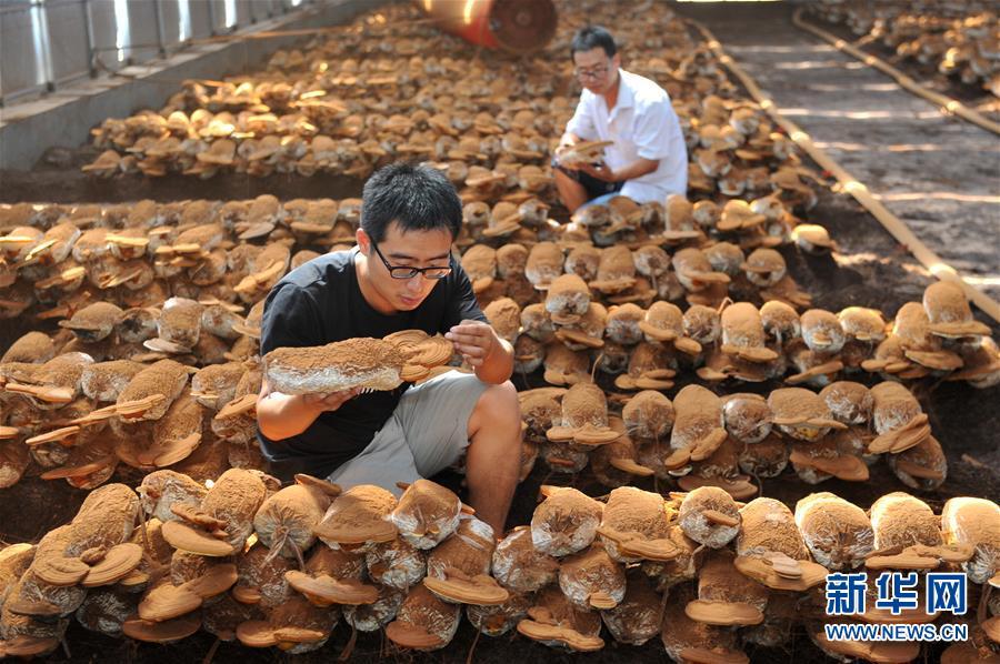 8月22日,河北省沙河市蟬房鄉(xiāng)水磨頭村農(nóng)民在大棚內(nèi)管理種植的靈芝。 新華社記者 牟宇 攝