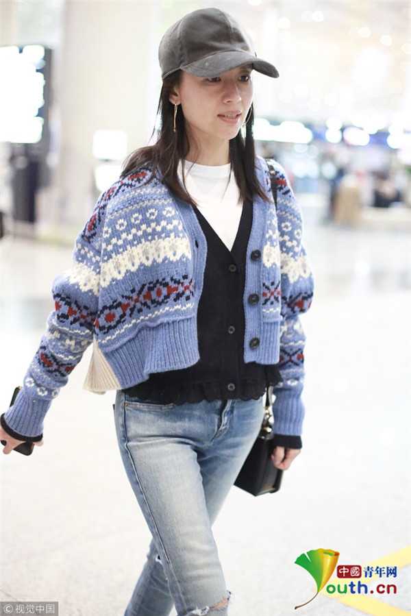 董潔素面朝天現(xiàn)身機場