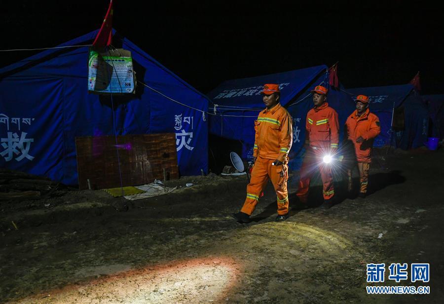 在西藏昌都市江達縣波羅鄉(xiāng)康扎西安置點內(nèi),消防隊員進行火災(zāi)隱患巡邏排查(11月11日攝)。 西藏自治區(qū)江達縣波羅鄉(xiāng)康扎西安置點,離波羅鄉(xiāng)政府直線距離約3公里,位于一處地勢開闊平緩的山谷中,比堰塞湖水面高出100多米。10月11日金沙江白格段山體滑坡發(fā)生后,當(dāng)?shù)鼐驮谶@里設(shè)立了安置點,安置附近受災(zāi)群眾。 新華社記者 劉東君 攝