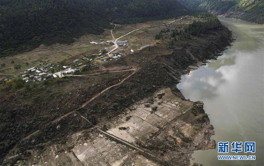 10月20日,西藏雅魯藏布江米林縣堰塞湖自然過(guò)流,露出通往加拉村的道路。 10月19日13時(shí)30分,西藏雅魯藏布江米林縣堰塞湖開(kāi)始自然過(guò)流。記者從應(yīng)急管理部牽頭的聯(lián)合工作組獲悉,截至20日7時(shí),雅魯藏布江堰塞湖壩前水位已下降56米,估算留存水量1.6億立方米,堰塞湖洪水威脅得到緩解,防洪安全風(fēng)險(xiǎn)大大減輕,并將繼續(xù)降低。 10月20日,記者乘坐直升機(jī)從空中拍攝了雅魯藏布江堰塞湖自然過(guò)流的畫(huà)面。 新華社記者普布扎西攝
