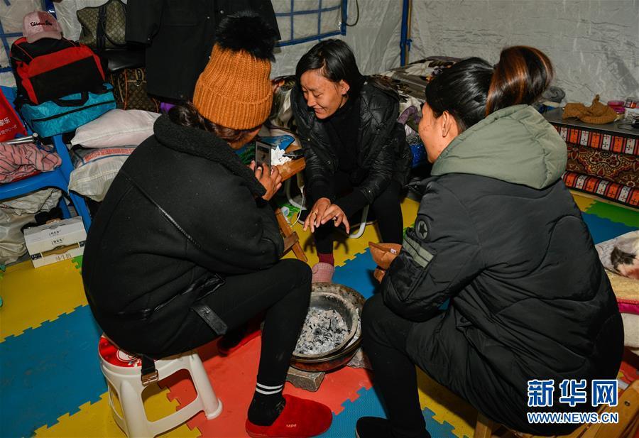 在西藏昌都市江達縣波羅鄉(xiāng)康扎西安置點,群眾在帳篷內(nèi)取暖(11月11日攝)。 西藏自治區(qū)江達縣波羅鄉(xiāng)康扎西安置點,離波羅鄉(xiāng)政府直線距離約3公里,位于一處地勢開闊平緩的山谷中,比堰塞湖水面高出100多米。10月11日金沙江白格段山體滑坡發(fā)生后,當?shù)鼐驮谶@里設立了安置點,安置附近受災群眾。 新華社記者 劉東君 攝