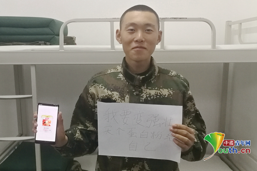“班長總說我太瘦,買罐蛋白粉,我要快點(diǎn)變強(qiáng)壯?!蔽渚本┛傟?duì)執(zhí)勤第二支隊(duì)供圖。