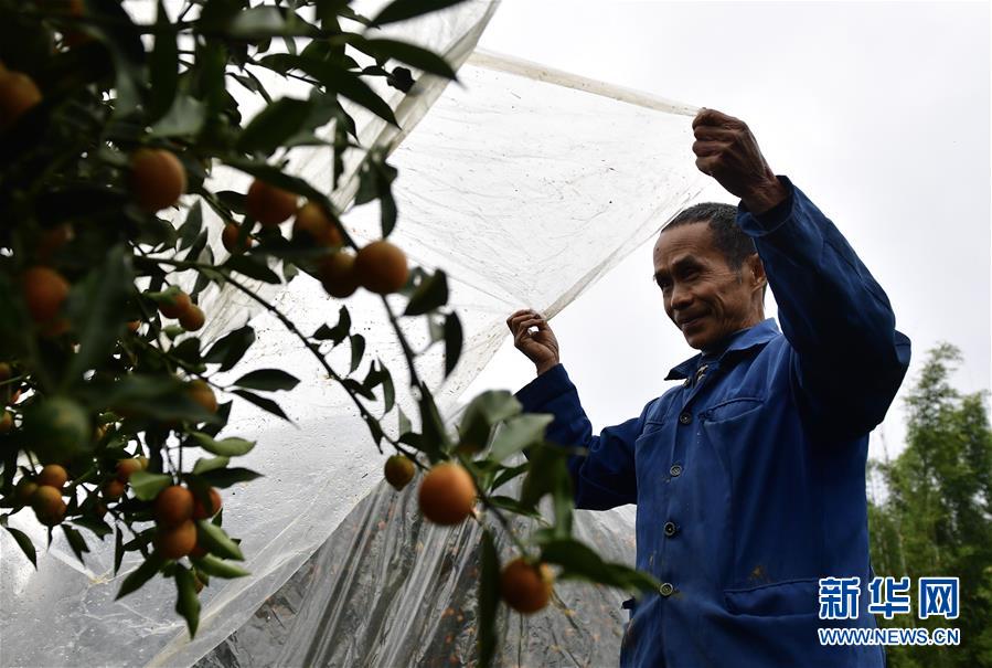 11月13日,融安縣大將鎮(zhèn)才妙村果農(nóng)為金桔覆蓋保溫膜。
