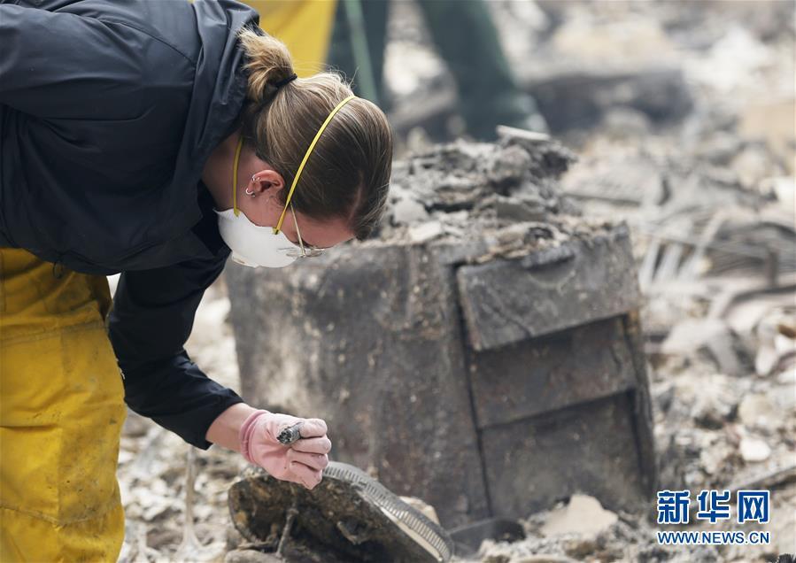 11月13日,在美國加利福尼亞州天堂鎮(zhèn),搜救人員在山火過后的廢墟工作。