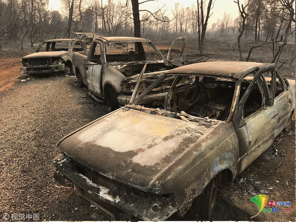聲明說,警方調查人員自8日起接到多起報告說山火在天堂鎮(zhèn)造成人員死亡,但由于火勢猛烈,調查工作難以展開。目前,調查人員已在天堂鎮(zhèn)一輛被燒毀的汽車中發(fā)現(xiàn)5名死者,確定死因是在乘車逃離過程中被山火吞噬。