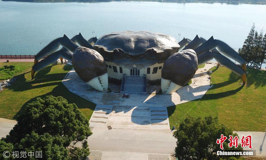 據(jù)了解,這是建造中的大閘蟹生態(tài)館,預(yù)計未來將在大閘蟹的白肚內(nèi)容納三層空間,集休閑、娛樂,以及有關(guān)大閘蟹體驗于一體的設(shè)施。圖片來源:視覺中國
