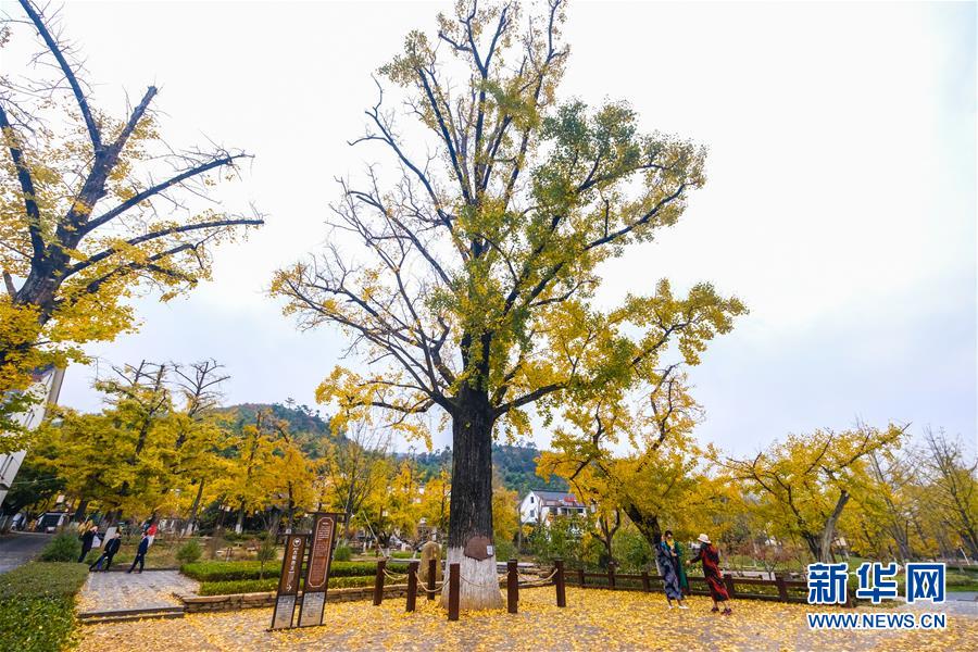 11月16日,游客在銀杏林中游玩。近日,在浙江省長興縣小浦鎮(zhèn),“十里銀杏長廊”和近千畝花海經(jīng)過近一年的升級改造后,以嶄新的面貌與游客見面?;ê!⒂^光小火車、古村民宿、銀杏長廊等旅游項目全面提升了小浦鎮(zhèn)鄉(xiāng)村旅游的品質(zhì)。新華社記者 徐昱 攝