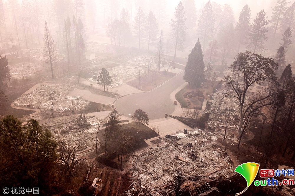 天堂變“地獄” 航拍加州山火肆虐社區(qū)似墓地