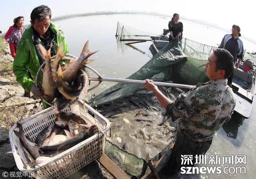 深圳新聞網(wǎng)訊  江蘇揚(yáng)州,邗江區(qū)公道鎮(zhèn)南湖村南湖水域,專業(yè)捕撈隊(duì)人員已集結(jié)到胡登強(qiáng)養(yǎng)殖戶家魚塘進(jìn)行捕撈作業(yè)。據(jù)捕撈隊(duì)員沈昌田介紹,近期隨氣溫轉(zhuǎn)冷,魚的銷量增加,水產(chǎn)養(yǎng)殖戶紛紛捕魚上市,為趕在上午10時(shí)將魚運(yùn)到水產(chǎn)批發(fā)市場銷售,專業(yè)捕撈隊(duì)員們天不亮就起床,下河塘布圍網(wǎng)、收網(wǎng)撈魚、過秤裝車。一周捕撈作業(yè)有三四次之多,一次捕撈多達(dá)上萬斤魚。公道鎮(zhèn)有水面灘涂6.5萬畝,是魚、蝦、蟹、等水產(chǎn)品養(yǎng)殖的理想場所。