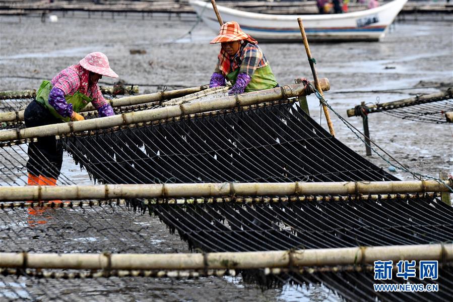 10月24日,福建莆田蔣山村村民在收獲紫菜?! ⌒氯A社記者張國俊 攝