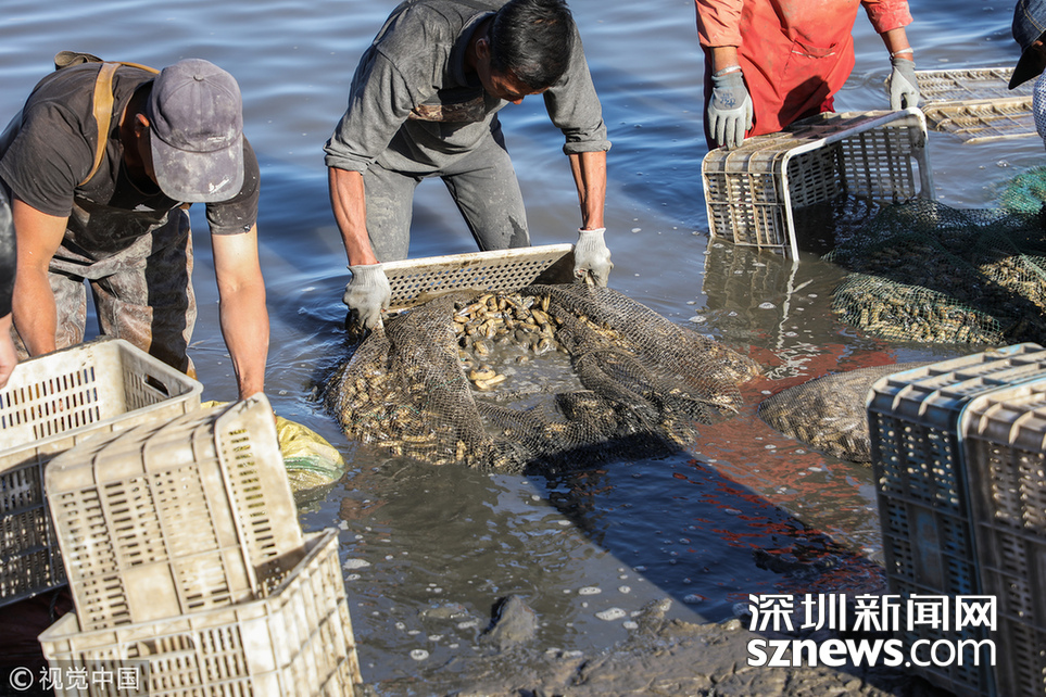 在沿海地區(qū),挖蟶屬于高強(qiáng)度體力勞動(dòng)之一。挖蟶人大都處在四五十歲五六十歲的年齡段,甚至有70多歲的。一位69歲的挖蟶人介紹說(shuō),9月8日當(dāng)天,他挖了不到200斤蟶子,屬于挖蟶人當(dāng)中產(chǎn)量較低的。