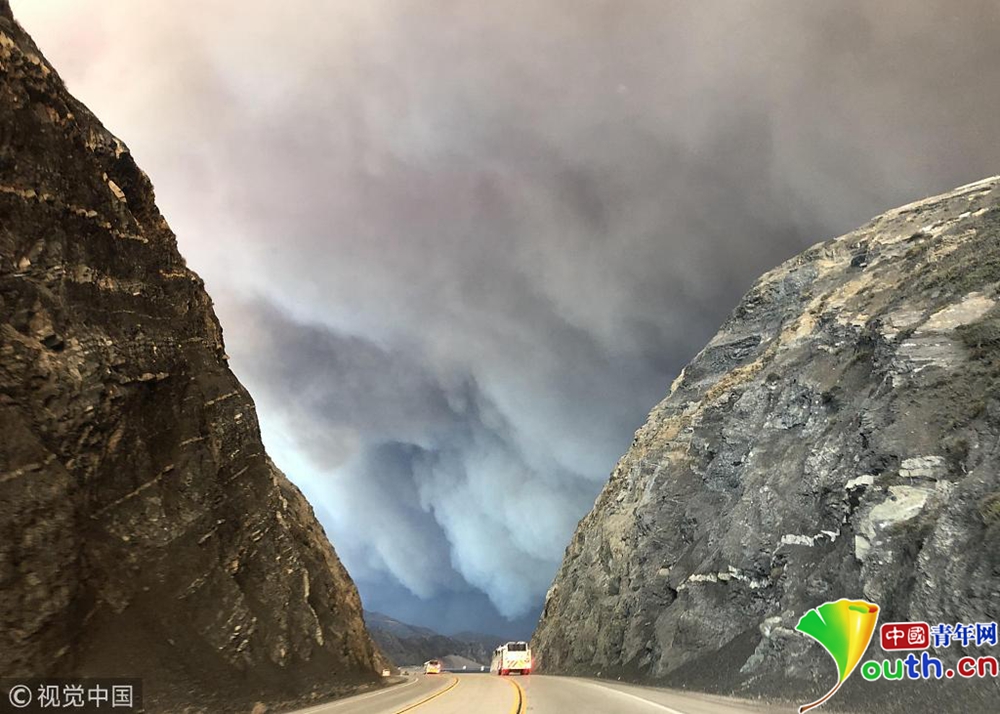 圖為文圖拉郡內(nèi)山火引發(fā)的濃煙。