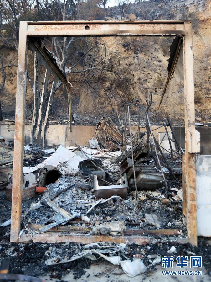 這是11月10日在美國(guó)加利福尼亞州馬里布市拍攝的一輛被燒毀的汽車(chē)。連日來(lái),美國(guó)加利福尼亞州野火肆虐。 新華社記者李穎攝
