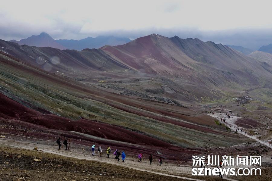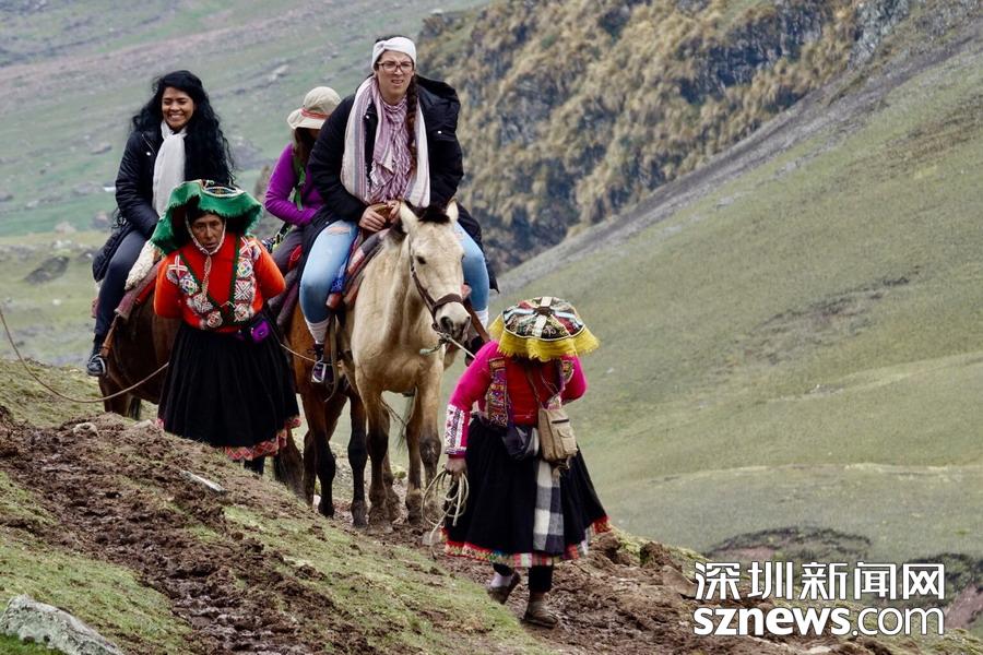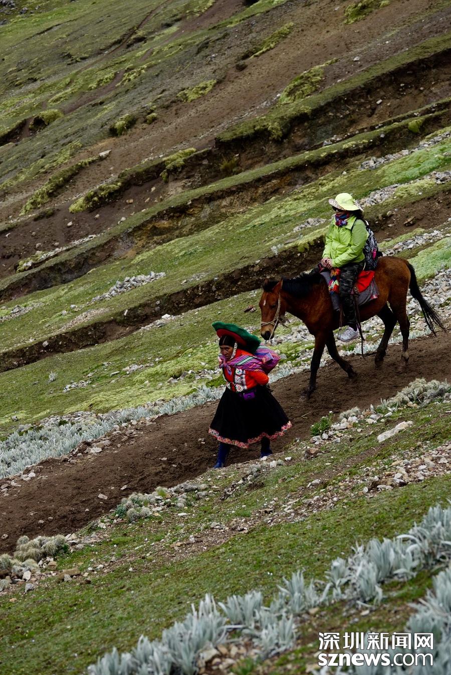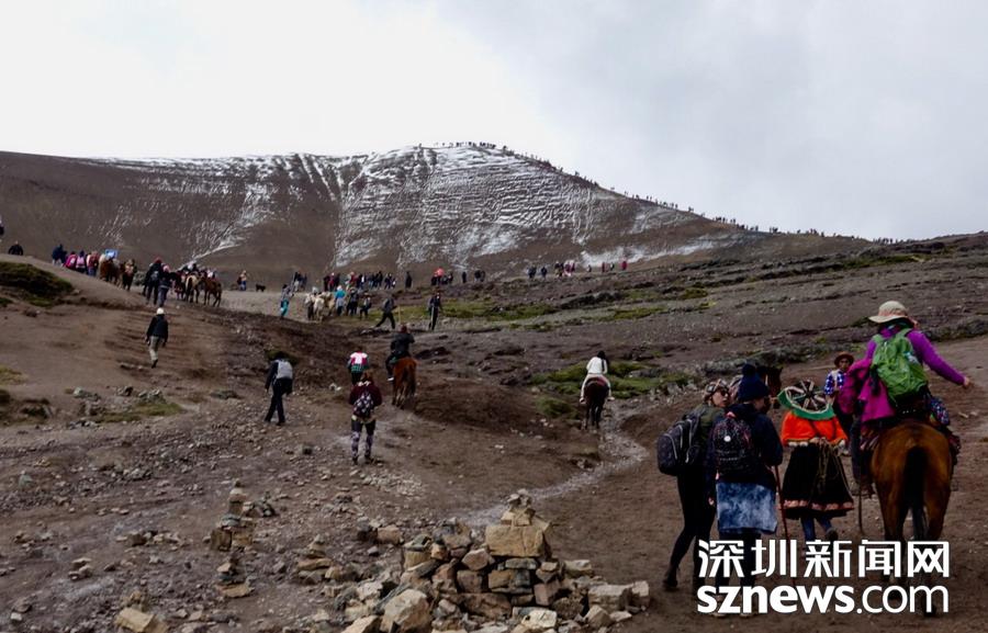 深圳新聞網(wǎng)訊 彩虹山被當?shù)厝朔Q為維昆尼卡。深藏于秘魯庫斯科古城附近的安第斯山脈之中,多年來它一直隱藏在冰雪之下,據(jù)說是因為溫室效應(yīng),雪線升高露出真容,才于2016年被發(fā)現(xiàn),并迅速成為世界知名景點。這里可以觀賞到的還有冰川、高山草甸、羊駝以及當?shù)厣贁?shù)民族的風(fēng)情。李仁奇攝