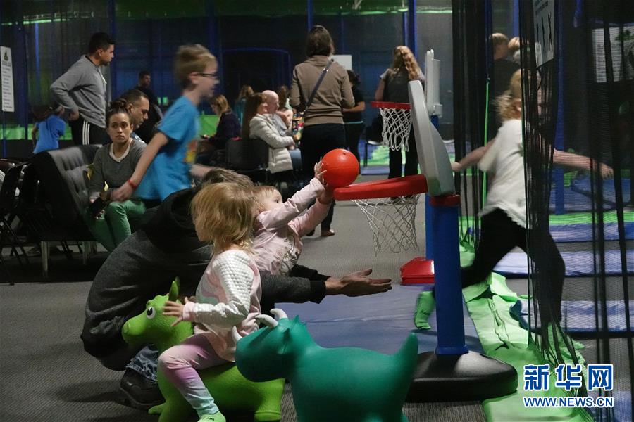 11月20日,在美國加利福尼亞州比尤特縣奇科的一處游樂場,家長陪孩子在親子聚會上做游戲。該活動旨在通過游戲緩解災區(qū)兒童的心理創(chuàng)傷。