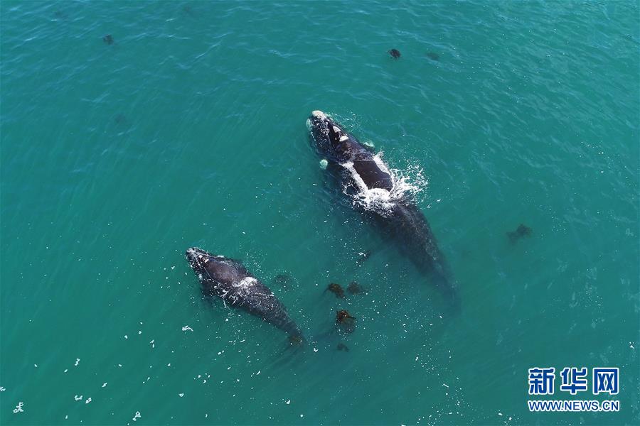 9月30日,在南非赫曼紐斯小鎮(zhèn)附近海面上,南露脊鯨在海岸邊暢游。9月29日,位于開普敦以東約115公里的赫曼紐斯小鎮(zhèn)迎來2018年的鯨魚節(jié),來自世界各地的游客可乘船出海觀鯨,也可在岸邊等待鯨魚的到來。新華社記者陳誠攝