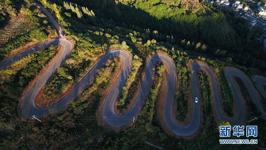 云南宜良“68道拐”位于云南省昆明市宜良縣,是宜良縣城通往靖安哨村的盤(pán)山公路。公路依山梁而修建,蜿蜒曲折,6.3公里的路程共有68道彎。 新華社記者 楊牧源 攝
