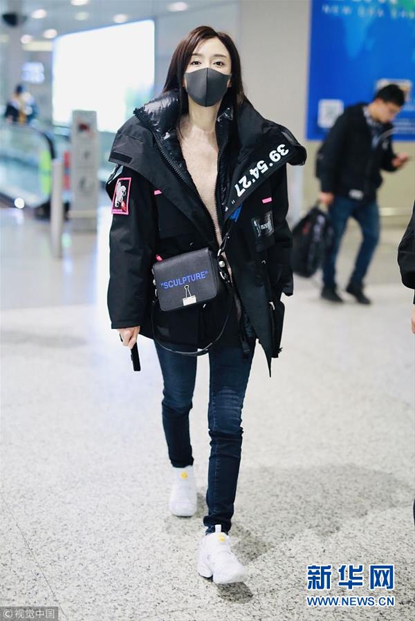 2018年12月3日,上海,秦嵐亮相機(jī)場(chǎng)。潮味棉服亮相機(jī)場(chǎng)變酷女孩,口罩遮面露甜笑心情靚。(圖片來源:視覺中國)