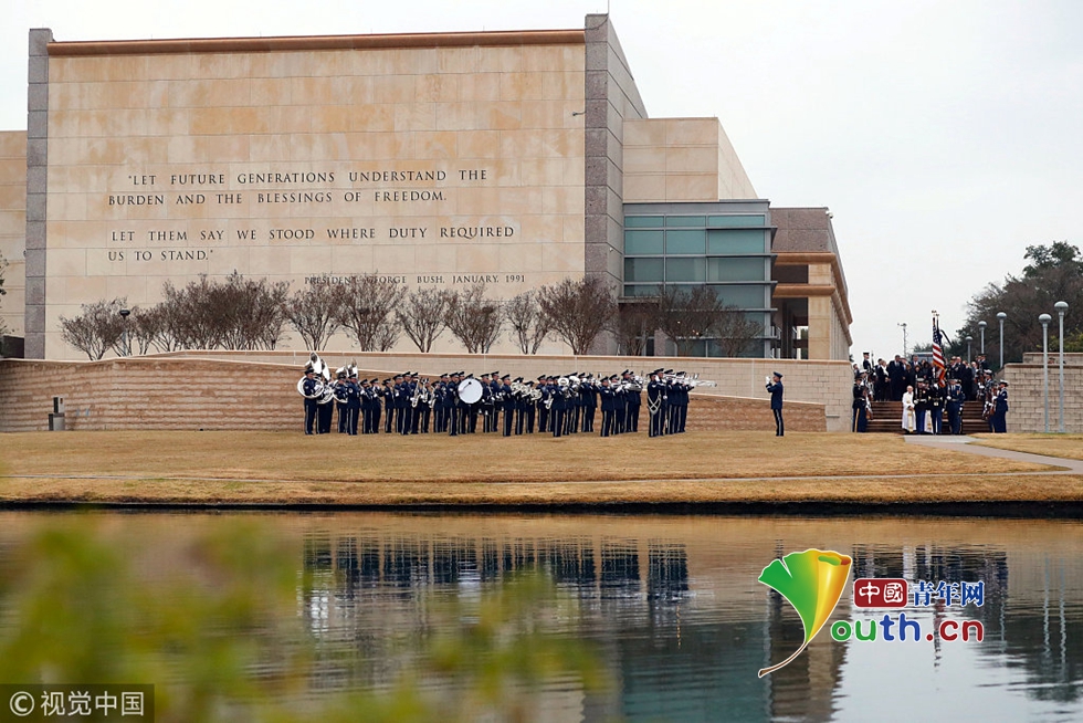 老布什靈柩下葬德州家族墓地 21架F18戰(zhàn)機(jī)編隊(duì)悼念