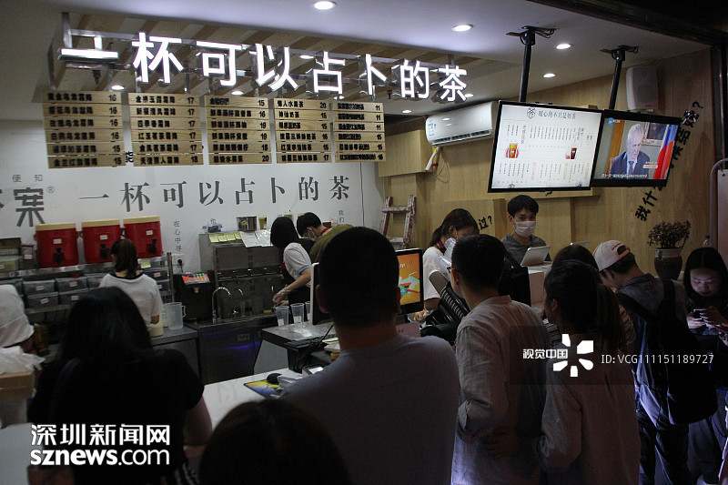 2018年4月21日,重慶,萬達廣場附近有一家新開業(yè)的網(wǎng)紅答案茶的冷飲店,這家答案茶冷飲店人氣異?;鸨?,門前已排起了兩條“長龍”。